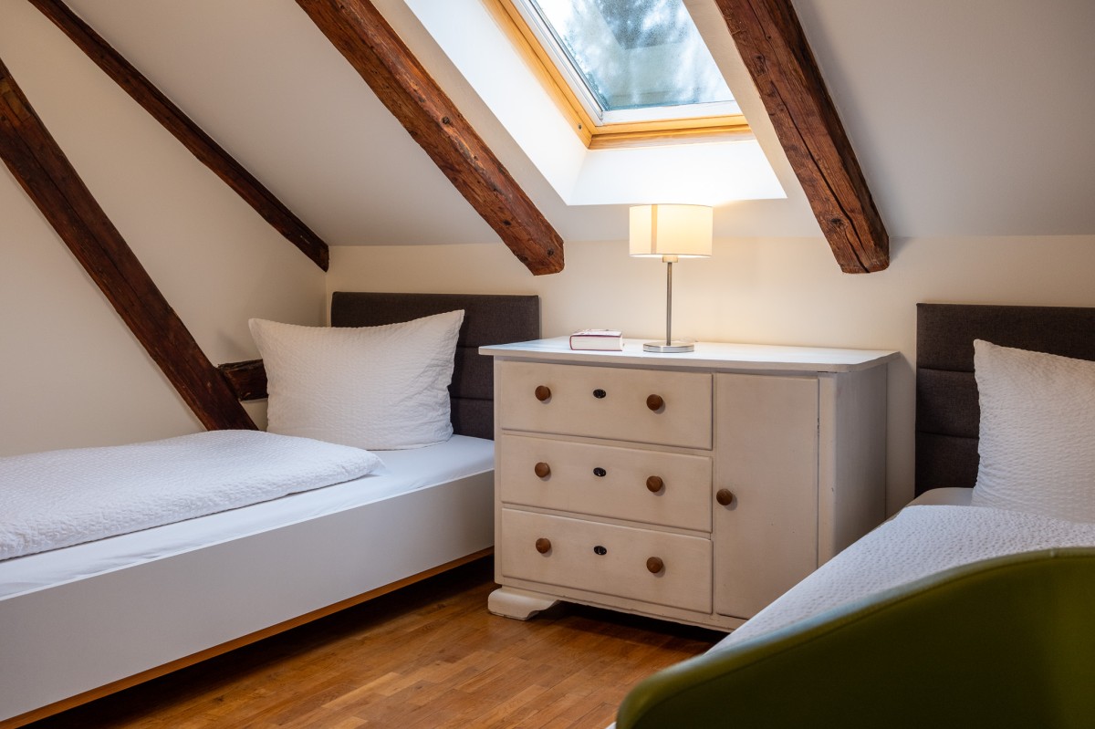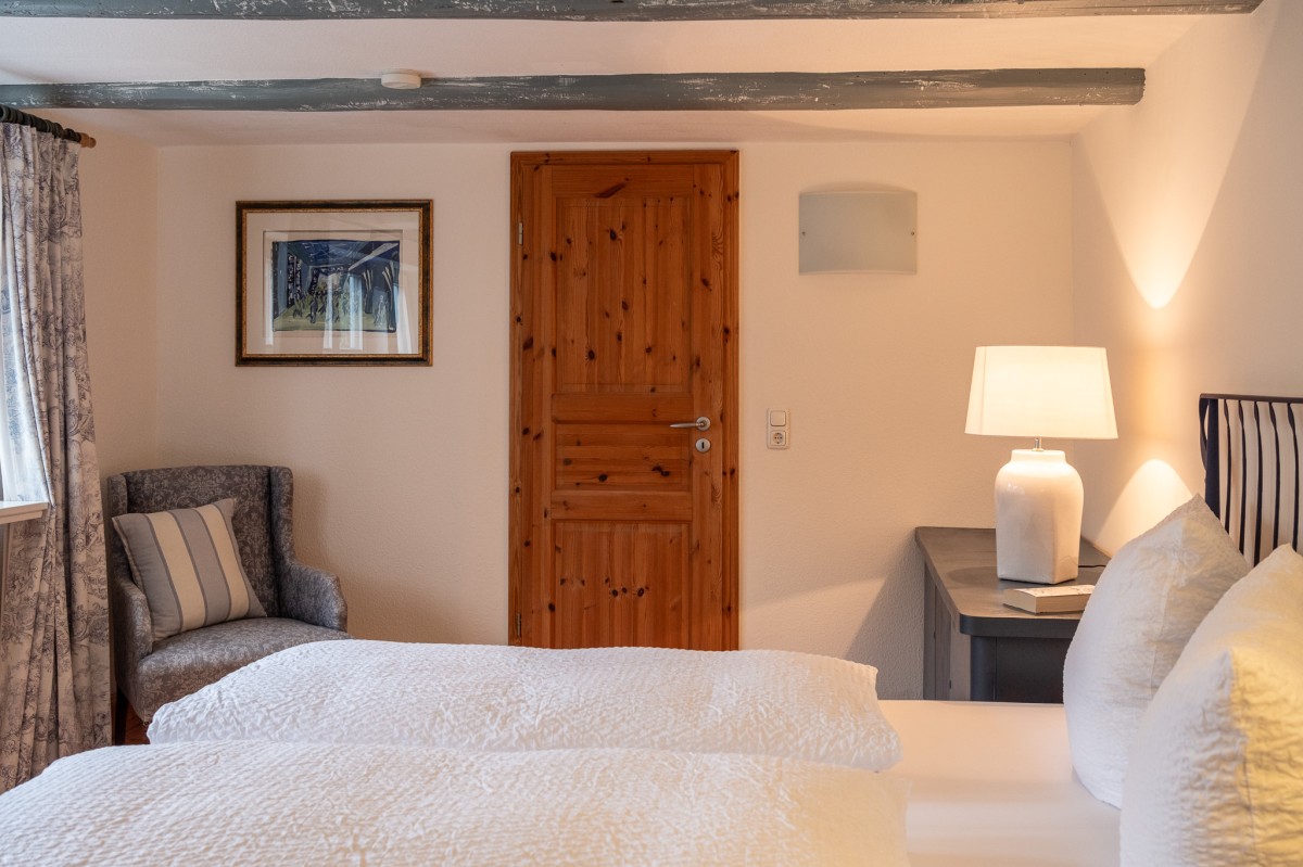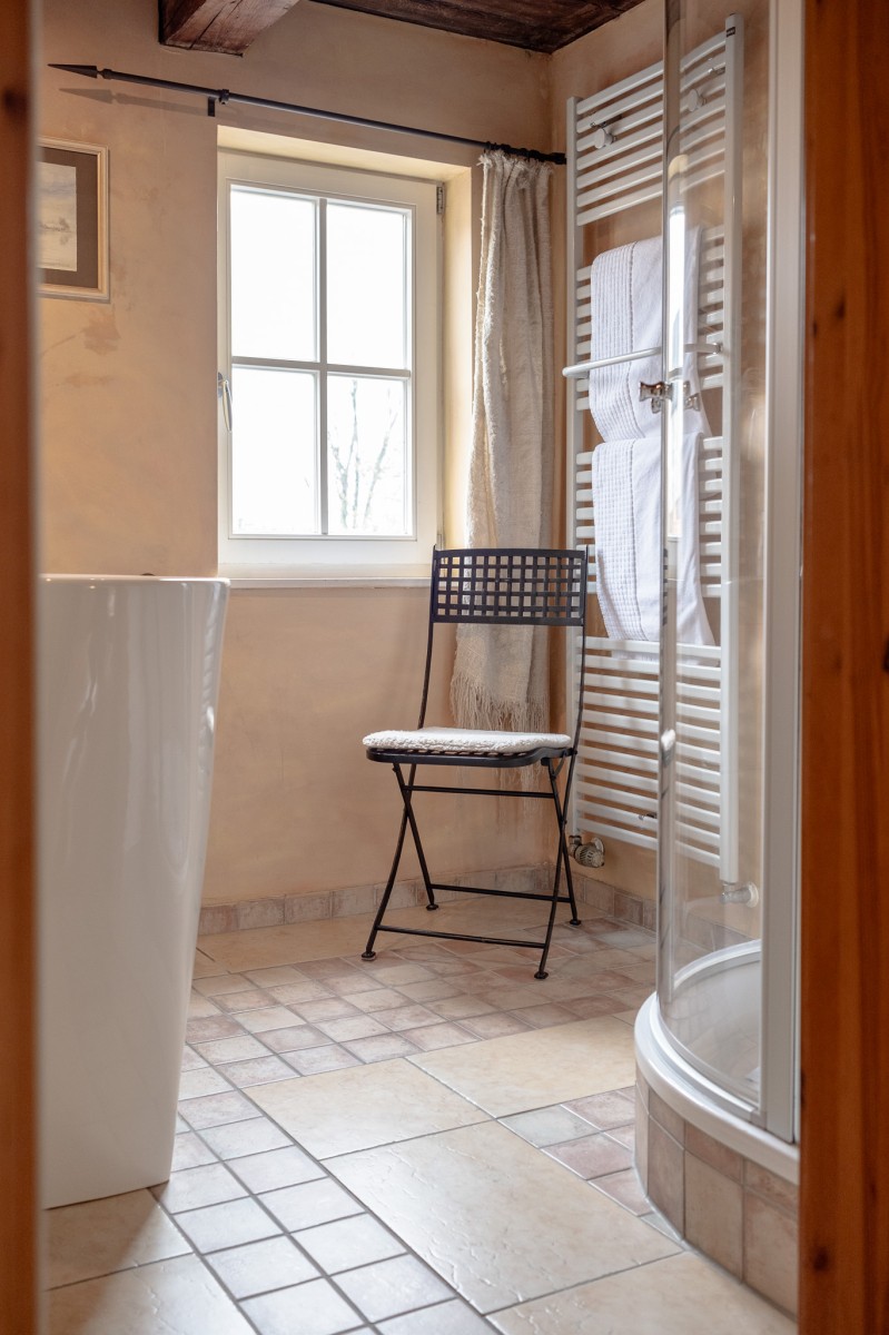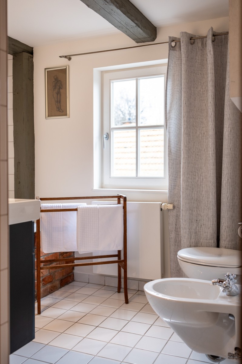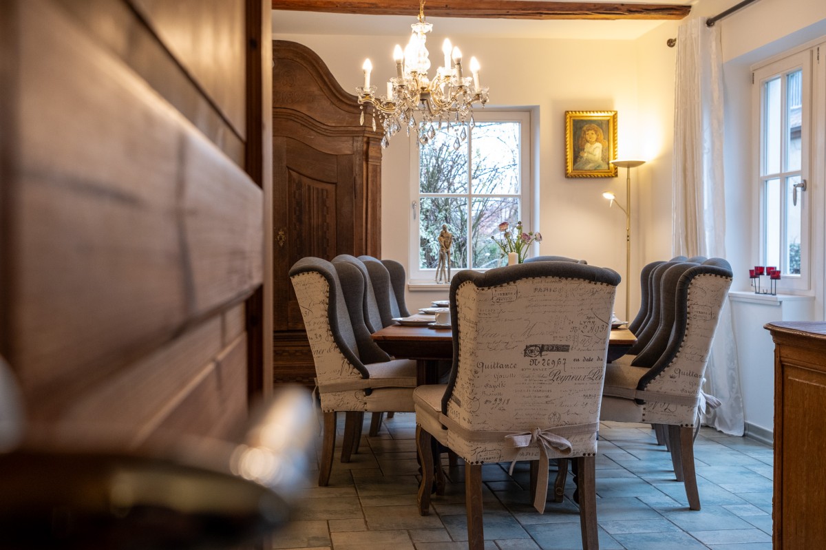 Ebenso großzügig ist das Apartment Königstein ausgestattet. Das 155 m² große Apartment verteilt sich auf 3 Etagen und bieten Platz für 8 - 9 Personen. Im Erdgeschoss befindet sich der Wohn- / Essbereich mit Kamin und Gäste-WC. Die Küche hat einen direkten Zugang zur Terrasse und in den Garten. Die 4 Schlafräume und 3 Bäder verteilen sich auf die beiden oberen Etagen. Der Balkon mit Blick in den Hof bietet eine weitere Rückzugsmöglichkeit. Antiquitäten und Bilder verleihen dem Apartment viel Individualität.