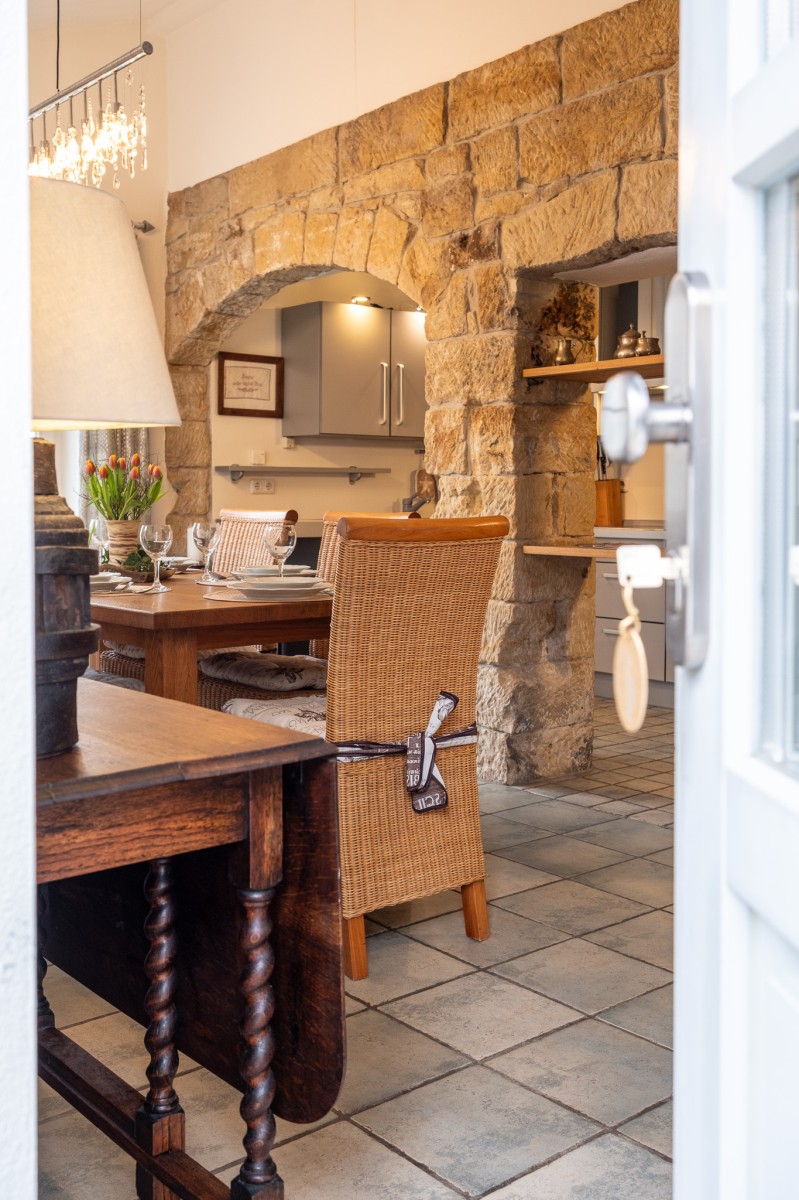 Das Apartment Pfaffenstein bietet auf 3 Etagen (110 m²) Platz für 6 Personen und verfügt über 3 Schlafzimmer, 1 Badezimmer mit Wanne/Dusche/WC und 1 Badezimmer mit Dusche/ WC, In der schönen Essdiele mit Küche und Terrasse und im gemütlichen Wohnzimmer können Sie gemeinsame Zeit verbringen . Das historische Sandsteinmauerwerk ist ein besondere Hingucker.