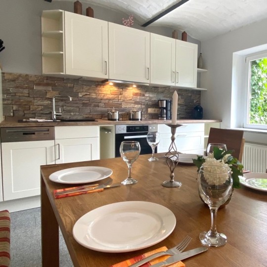 Das Ferienhaus in Papstdorf befindet sich abseits der Straße auf einem 2000 qm großen Grundstück mit altem Baumbestand und direkt an einem Feld. Erholen Sie sich in ruhiger & idyllischer Lage. Eine, aus dem 19. Jahrhundert stammende, Scheune mit Pferdestall wurde für Sie zu einer gemütlichen Ferienwohnung umgebaut. In der Küche findet man noch heute das alte Gewölbe. Im Garten des benachbarten „Brunnenhofes“ befindet sich ein kleines Saunahäuschen.