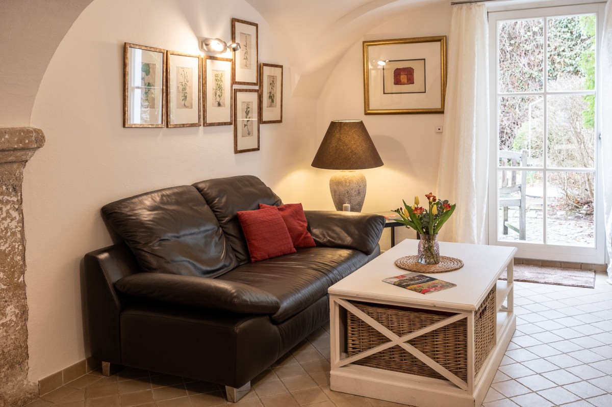 Das Apartment Lilienstein bietet mit ca. 50 m² Platz für 2 Personen und verfügt über 1 Schlafzimmer,1 Badezimmer mit Wanne, Küche sowie einem offenen Wohn-/ Essbereich mit historischen Gewölbe. Von dort haben Sie direkten Zugang zum Hof mit Terrasse.