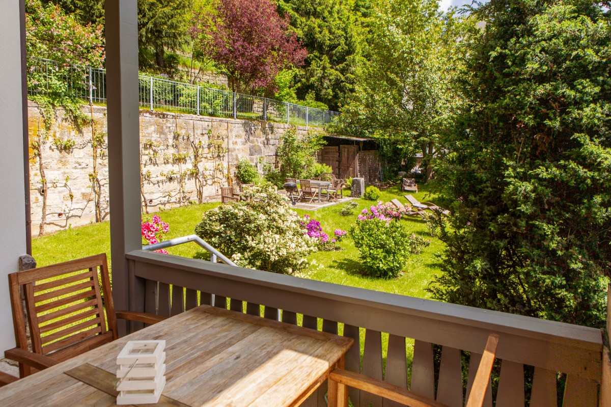 Öffnen Sie weit die Fenstertüren und lassen Sie die Natur herein – oder gehen Sie mitten hinein über Ihre private Treppe zum Garten.